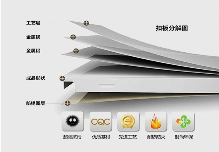 以上幾種對原材料有檔次的化分中,我們不難分析出每一種鋁扣板天花板成型后的質量保證。